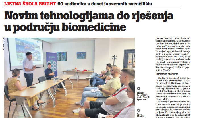 „Projekt Bright, u sklopu kojeg se održala velika međunarodna ljetna škola, djeluje u području 3D modeliranja za biomedicinska pomagala. Prvenstveno se to odnosilo na zaštitu medicinskih djelatnika.