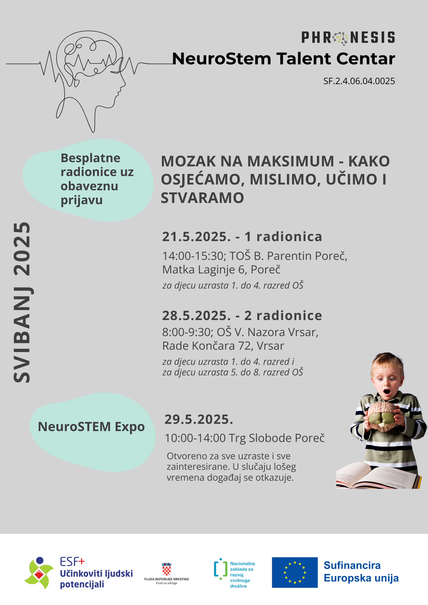 U četvrtak, 29. svibnja 2025., na Trgu slobode u Poreču, od 10:00 do 14:00 sati, održat će interaktivna STEM izložba uz edukativne panoe koji će objašnjavat ključne koncepte neuroznanosti, psihologije, biologije, znanosti te predstavljanje bio & neuro feedback opreme i metode. Svi ste pozvani!