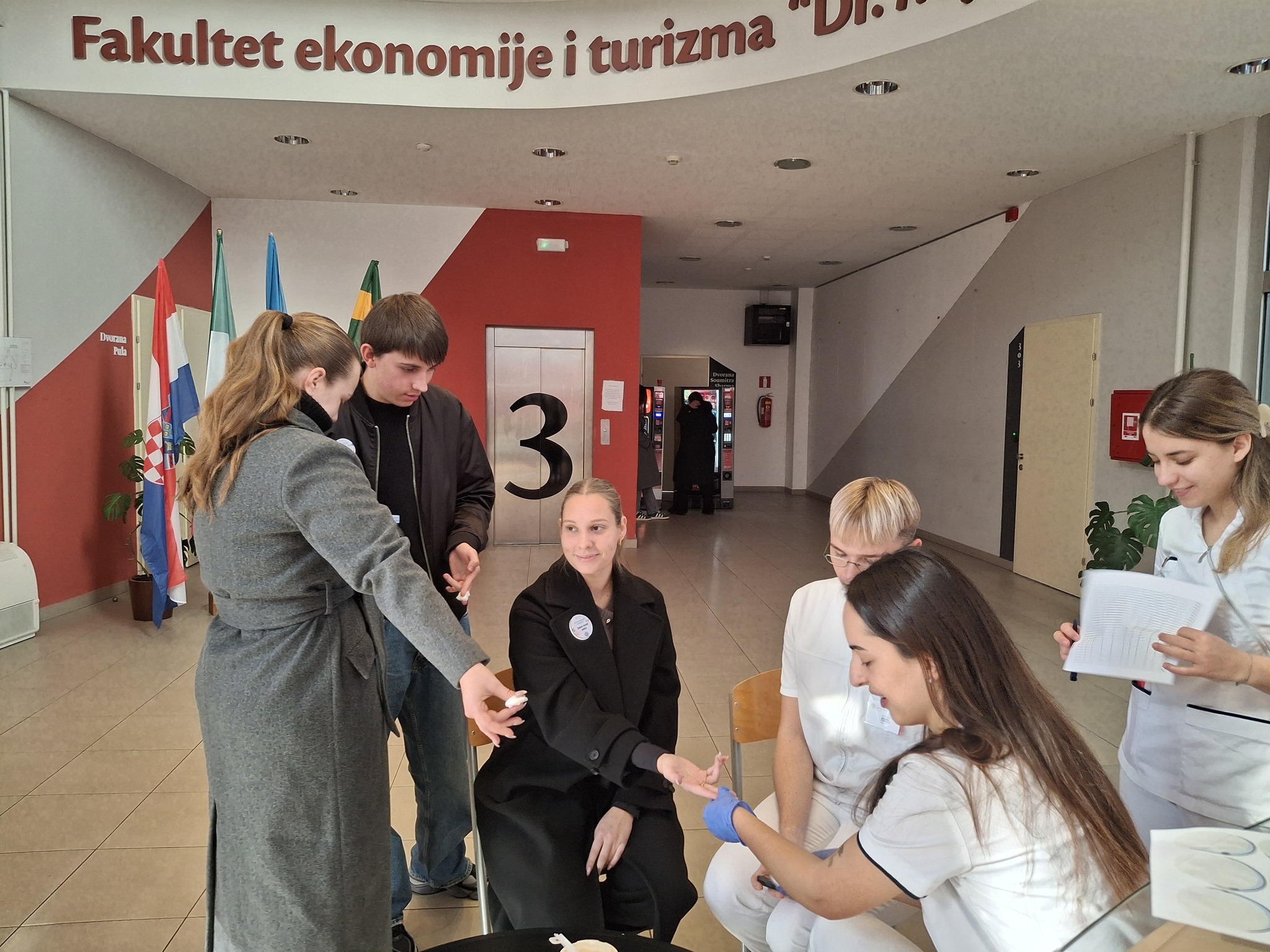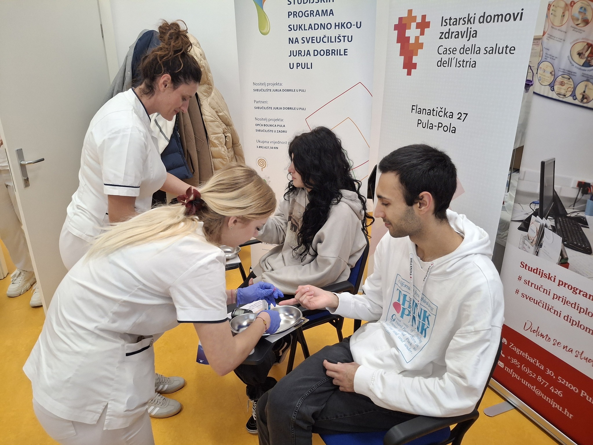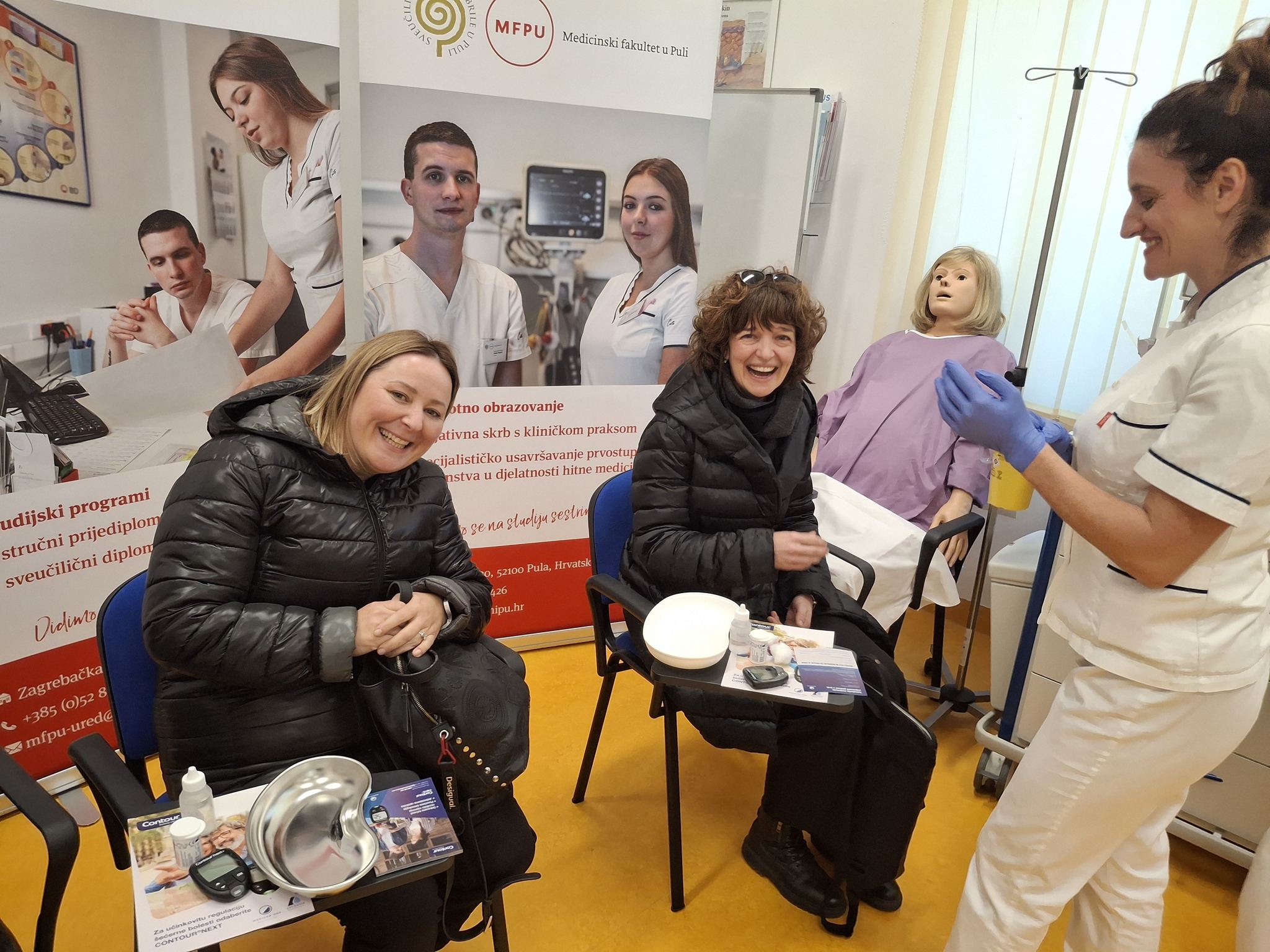 Dana 19. studenoga 2025. na Medicinskom fakultetu Sveučilišta Jurja Dobrile u Puli obilježen je Svjetski dan oboljelih od dijabetesa. Patronažne sestre Istarskih domova zdravlja Olga Rojnić, univ. mag. med. techn., Marijeta Racan, bacc. med. techn. i Maja Ljilja Švik, bacc. med. techn.  u suradnji s nastavnicima Medicinskog fakulteta i studentima III. godine preddiplomskog studija Sestrinstvo proveli su akciju mjerenja glukoze iz kapilarne krvi za studente i djelatnike Sveučilišta.